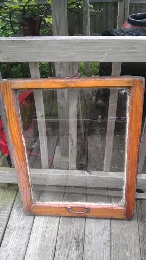 | the window will obviously need a bit of love and careful cleaning before we glue the sea glass on it! |